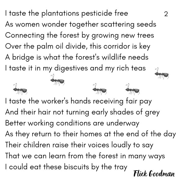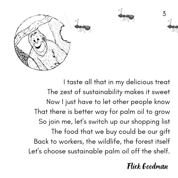 I was commissioned by Chester Zoo to create a workshop for families about Sustainable Palm Oil. This poem was on display during the workshop.